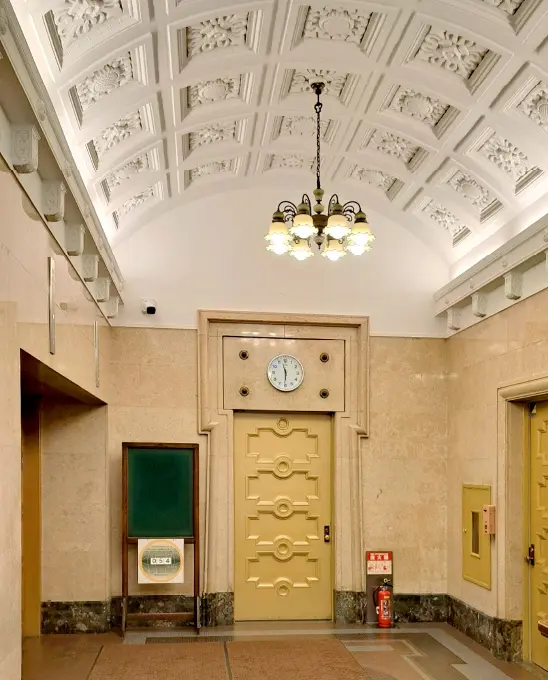 「丸石ビルディング」は全国的にも珍しい、本格的なロマネスク様式のビル。その華麗な外観に目を留めていた方も多いことでしょう。外壁の黄龍石やスクラッチタイル、玄関内部のモザイクタイルといった多様な素材が深みを増しています。今回、現役のオフィスビルだけに通常は入ることのできない1階のエントランスフロアが特別に公開されます。美術品のような仕上がりから、当時の人びとが建築に込めた思いが伝わります。