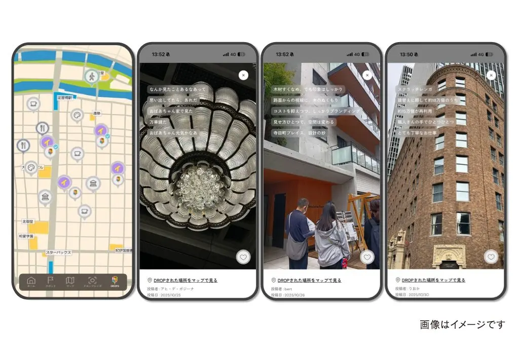 東京建築祭と、みんまちDROP(投稿付きデジタルマップ)のコラボレーションにより、みんなの建築体験を肌で感じる新たな場が生まれます。見たこと、気づいたこと、心が動いた瞬間を、写真とコメントで地図上にドロップ(投稿)。集まった体験が重なり合い、それぞれのまちの魅力が映し出されます。建築に込められた視点や背景に触れる参加建築のホスト(所有者や関係者)によるドロップもお楽しみに。